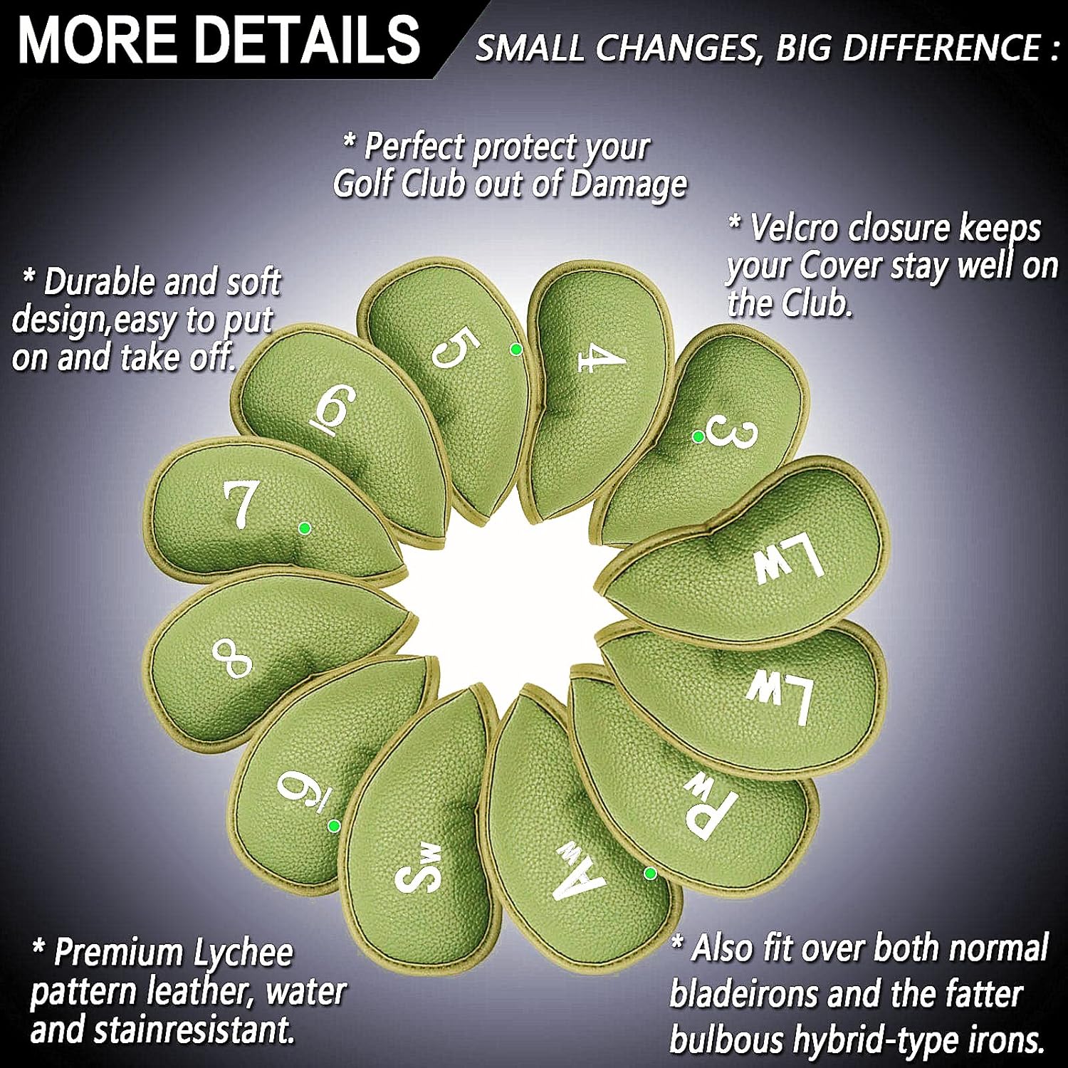 - Keep Your Irons Safety Anywhere: These Premium Golf Head Covers are a Must-have for Every Golfer who Values Protection and Style. Made from High-quality Synthetic Leather, They’re Water-resistant and Provide a Snug Club Fit to Shield Your Irons from Scratches, Dings, and Wear. Designed for Both Daily Play and Travel Convenience, They Add Sleek Aesthetic Appeal to Your Golf Bag Organization.
