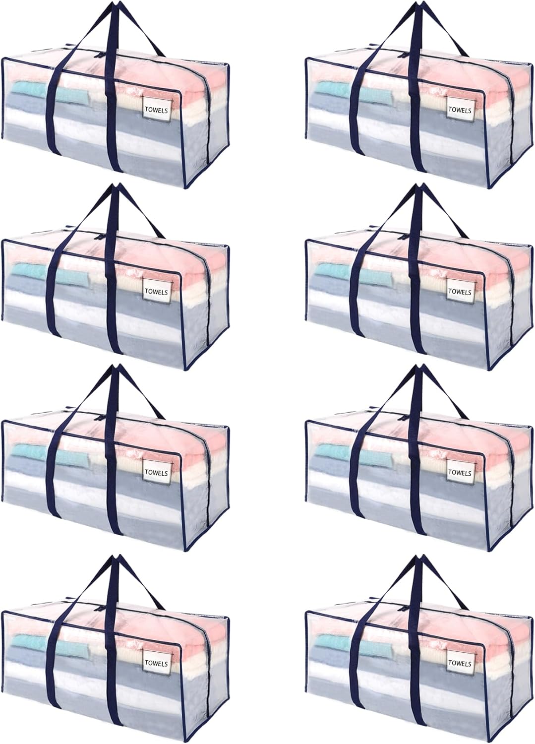 VENO 8 Pack Moving Bags Plastic Storage Totes Clothes Organization Large W Lid/Zipper. Packing Boxes/Bins Alternative. Space Saving Foldable College Supplies Essentials (Clear, 8 Pack)