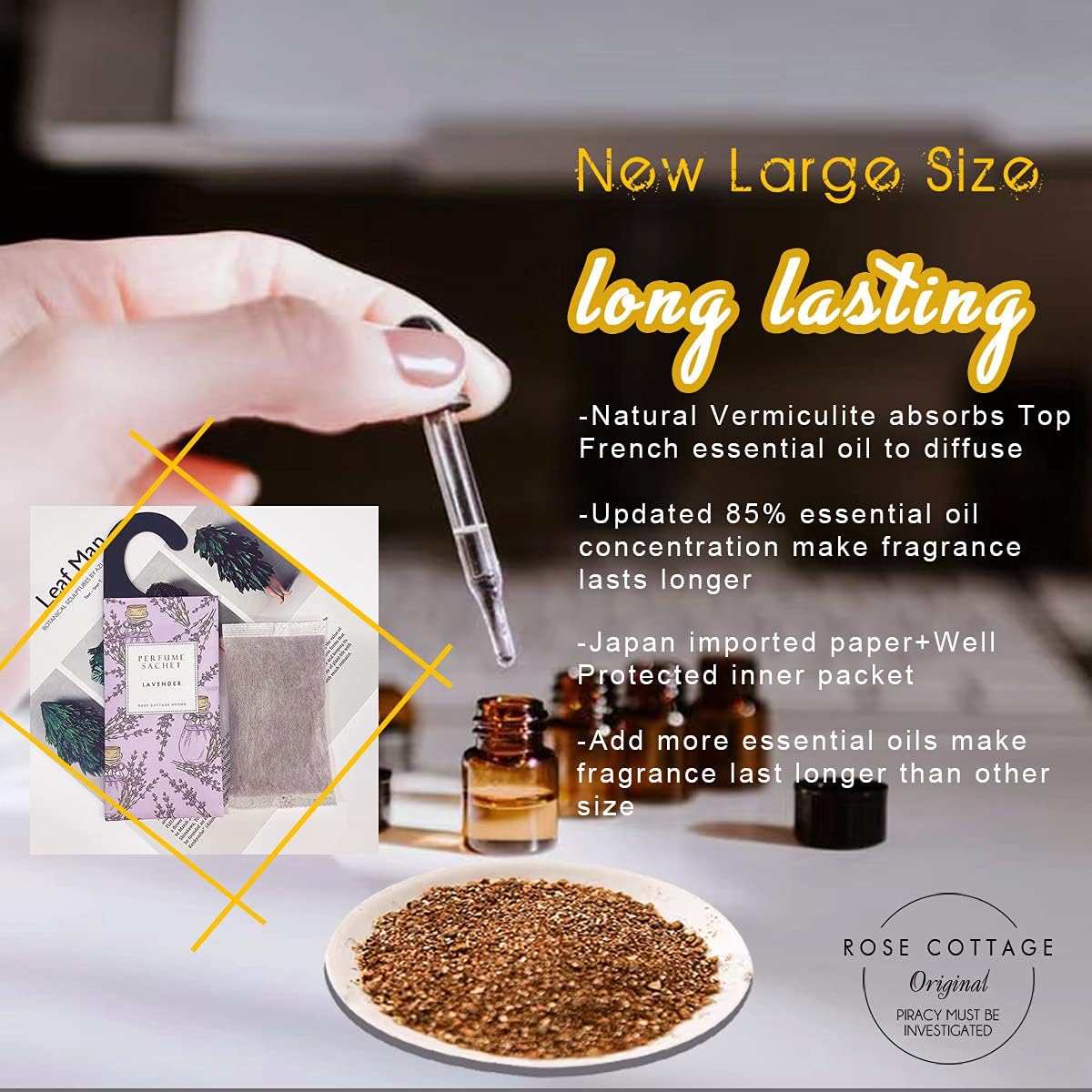 - [What makes ROSE COTTAGE special?] (1)This home fragrance Offer many variety of scents for you ,release pleasant air fresheners for home. (2) Using Japanese paper packaging which will not leak and more long lasting.(3) Perfect gift for friends and family , when you open it, you find something called a scented sachet bags with a beautiful design and even better nature fresh.
