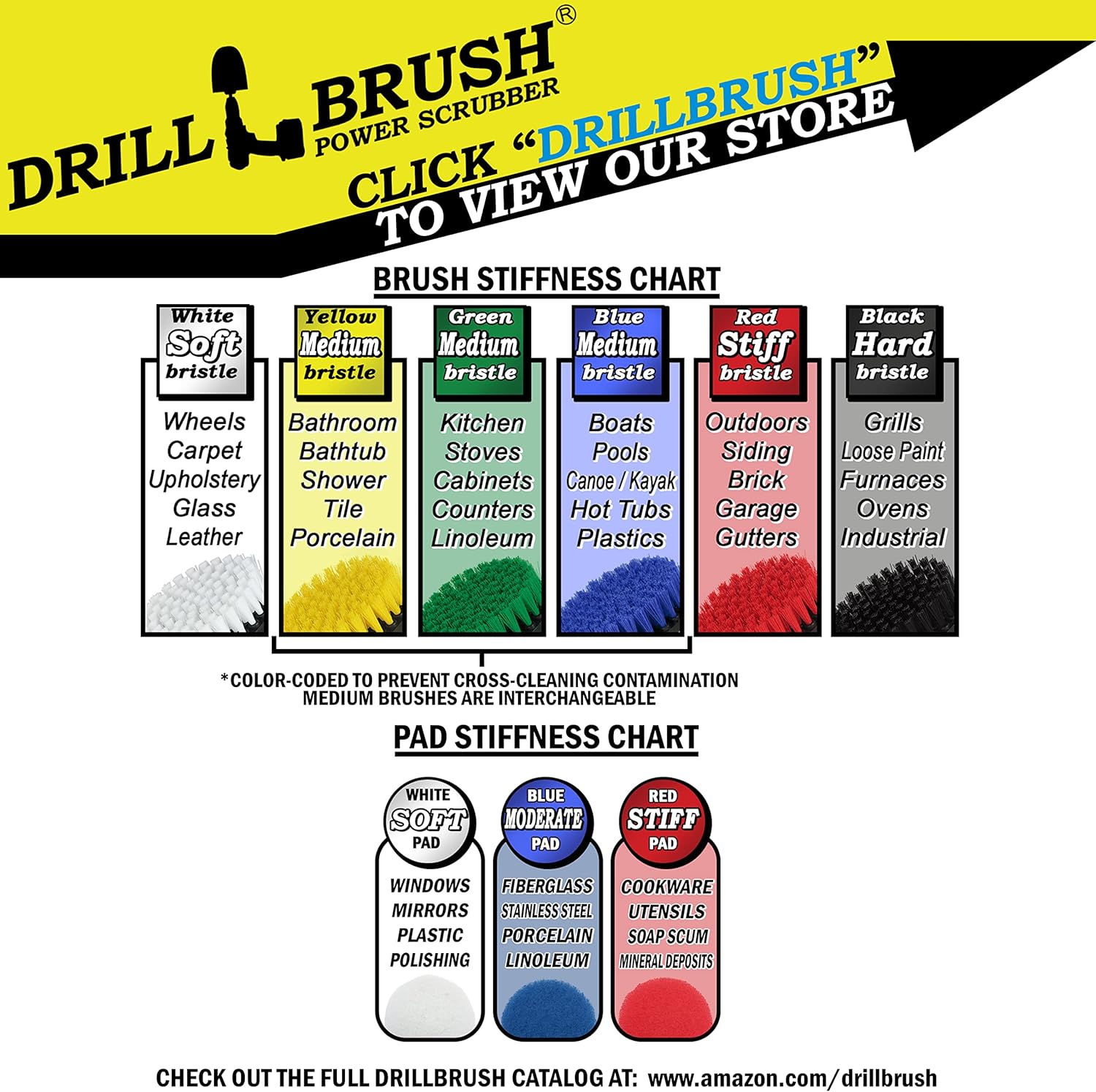 - Pad Combo Brush Set: This set includes 7 cleaning brushes for drills in our medium blue to insure you have the correct size to turn your drill into an aquatic cleaning machine. This kit also includes 3 different types of pads, our white soft, moderate red, and stiff blue, to insure you have the right stiffness to tackle even pool shed window cleaning needs. Our best-selling original bullet shaped brush is great for contours and crevices. The 2-inch flat is great for smaller filter cleaning.