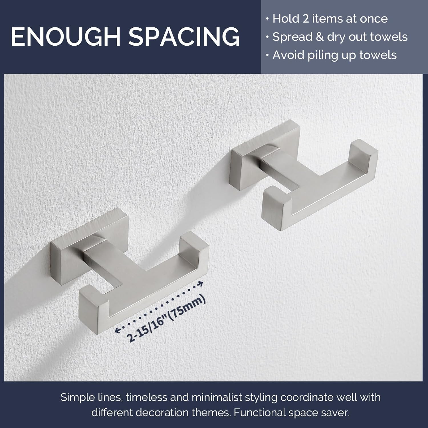 Angle Simple Bathroom Double Hook 2 PCS, SUS304 Stainless Steel Hand Towel Holder, Bath Towel Hanger, Modern Robe Hook for Wall, Brushed Nickel