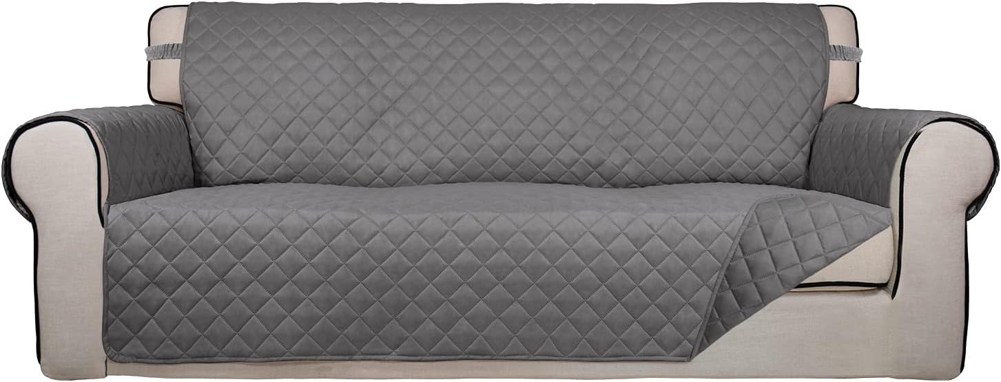 PureFit Reversible Quilted Sofa Cover, Water Resistant Slipcover Furniture Protector, Washable Couch Cover with Non Slip and Elastic Straps for Kids, Dogs, Pets (Sofa, Gray/Gray)