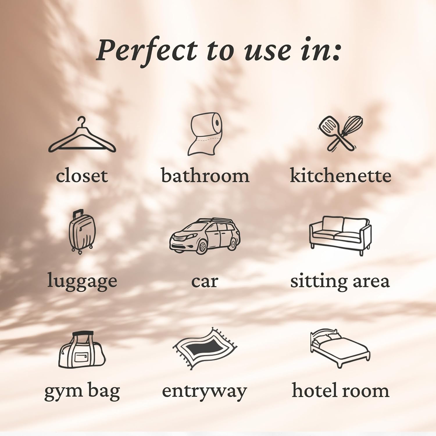 - This 2 oz travel spray ensures freshness on the go, safely eliminating odors from luggage, hotel rooms, and vehicles.