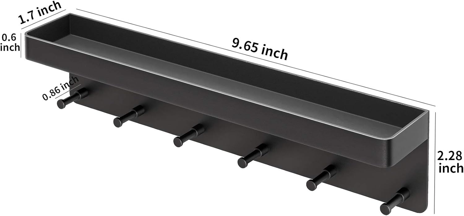 - Size : 9.65(L)x2.28(H)x1.7(W) inch. Length of Hooks:0.86 inch.Our key rack for wall with 6 key hooks and practical shelf space has you well equipped for a home