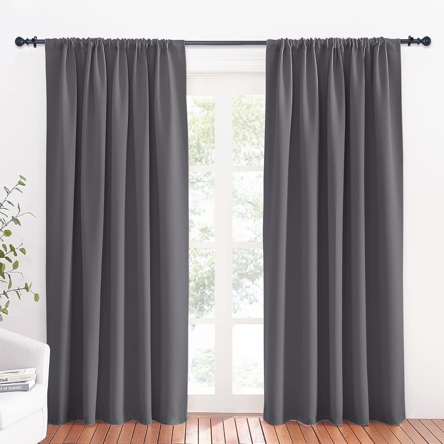 RYB HOME Large Curtains for Living Room 84 inches Length, Blackout Privacy Room Divider Curtains for Doorway Closet Basement Patio Door Bay Window, W 70 x L 84, Grey, 2 Panels