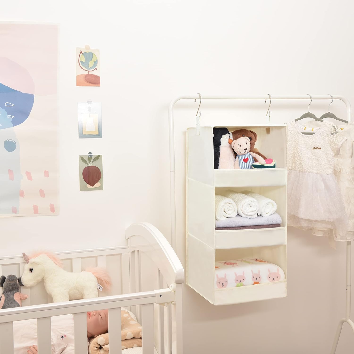 GRANNY SAYS 3-Shelf Hanging Organizer, Foldable Hanging Closet Storage, Hanging Shelves for Wardrobes & RV Closet, Beige, 29 ½" H X 12" W X 12" D, 1-Pack