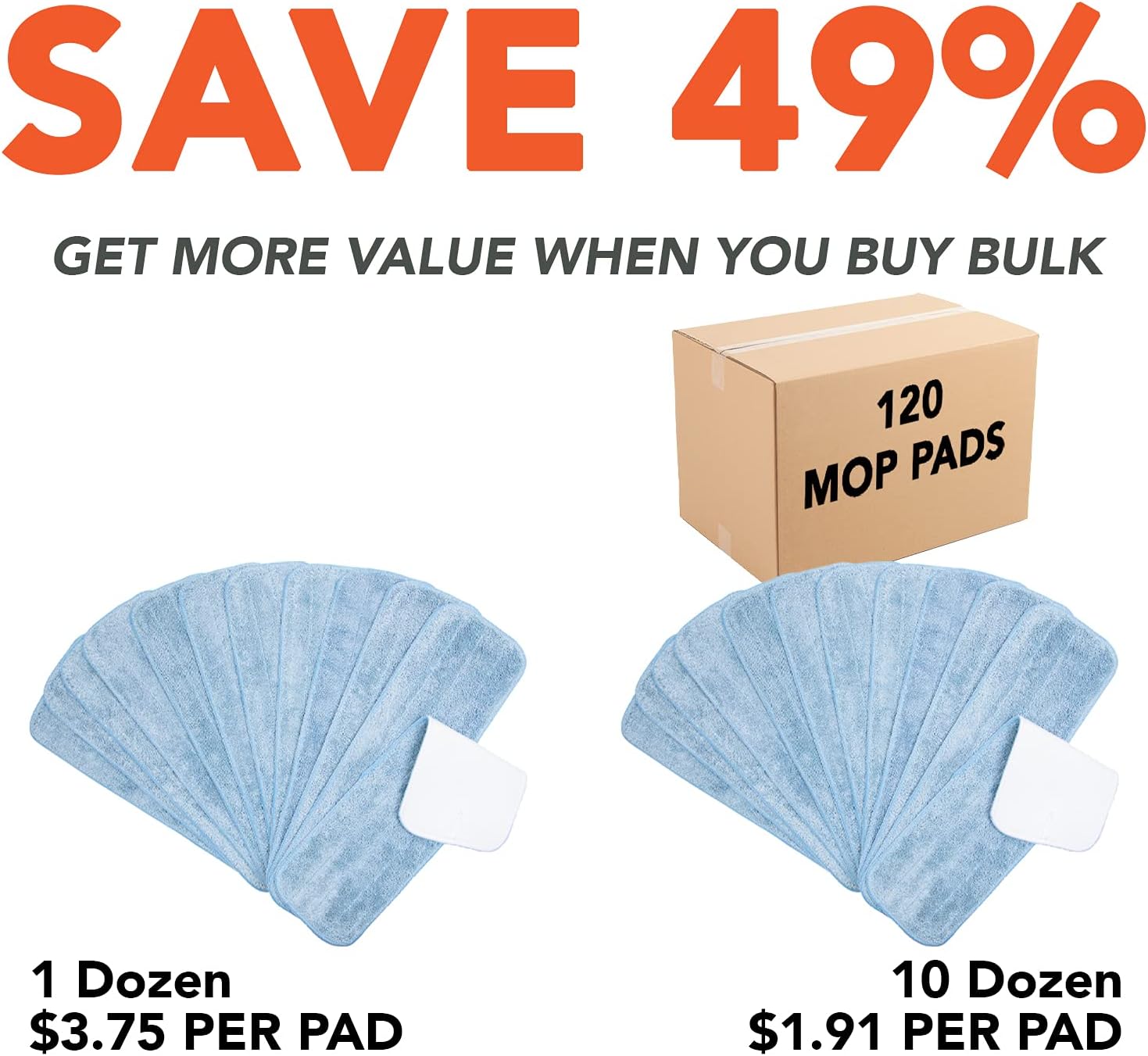 - ALL SIZE CLEANING SUPPLIES: Our commercial mop pad refills are designed to work with all-size velcro-backed flat mop frames, including compatible with Bona and Rubbermaid Mop Heads. Mop pads come in 13", 18" and 24" and are effective in cleaning any floor surface - vinyl, hardwood, laminate, and tile.
