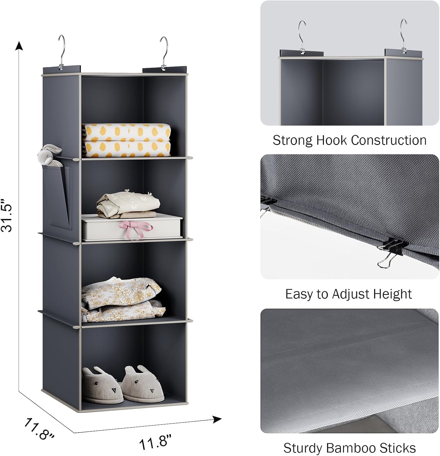 YOUDENOVA Hanging Closet Organizer, 4-Shelf Closet Hanging Storage Shelves, Grey