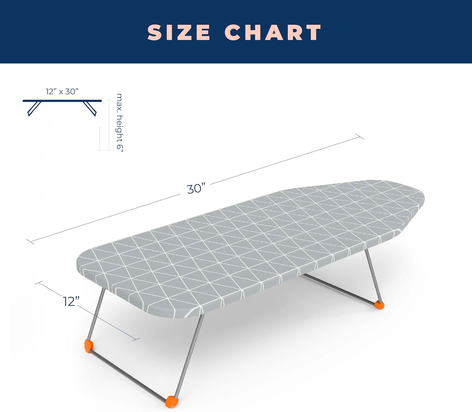 - LIGHTWEIGHT & SPACE SAVER: Happhom Tabletop Ironing Board is an excellent option for small places with its amazing space-saving size (12”x30”). It folds almost flat to fit anywhere where space is limited. It is easy to carry and take wherever you needed.