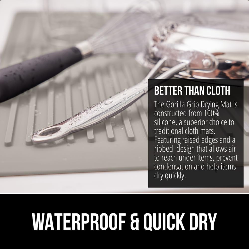 GORILLA GRIP 100% BPA-Free Patented Silicone Dish Drying Mat for Kitchen Counter, 18x16 Inch, Water Catching Ribbed Design, Easy Clean Waterproof Sink Liner, Heat Resistant, Fits Under Rack, Almond