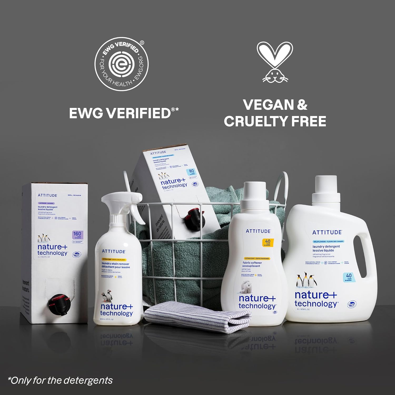 ATTITUDE Liquid Laundry Detergent Refill, EWG Verified, HE Compatible, Plant-Based & Vegan, Natural Laundry Soap, Citrus Zest Scent, 160 Loads, 135.26 Fl Oz