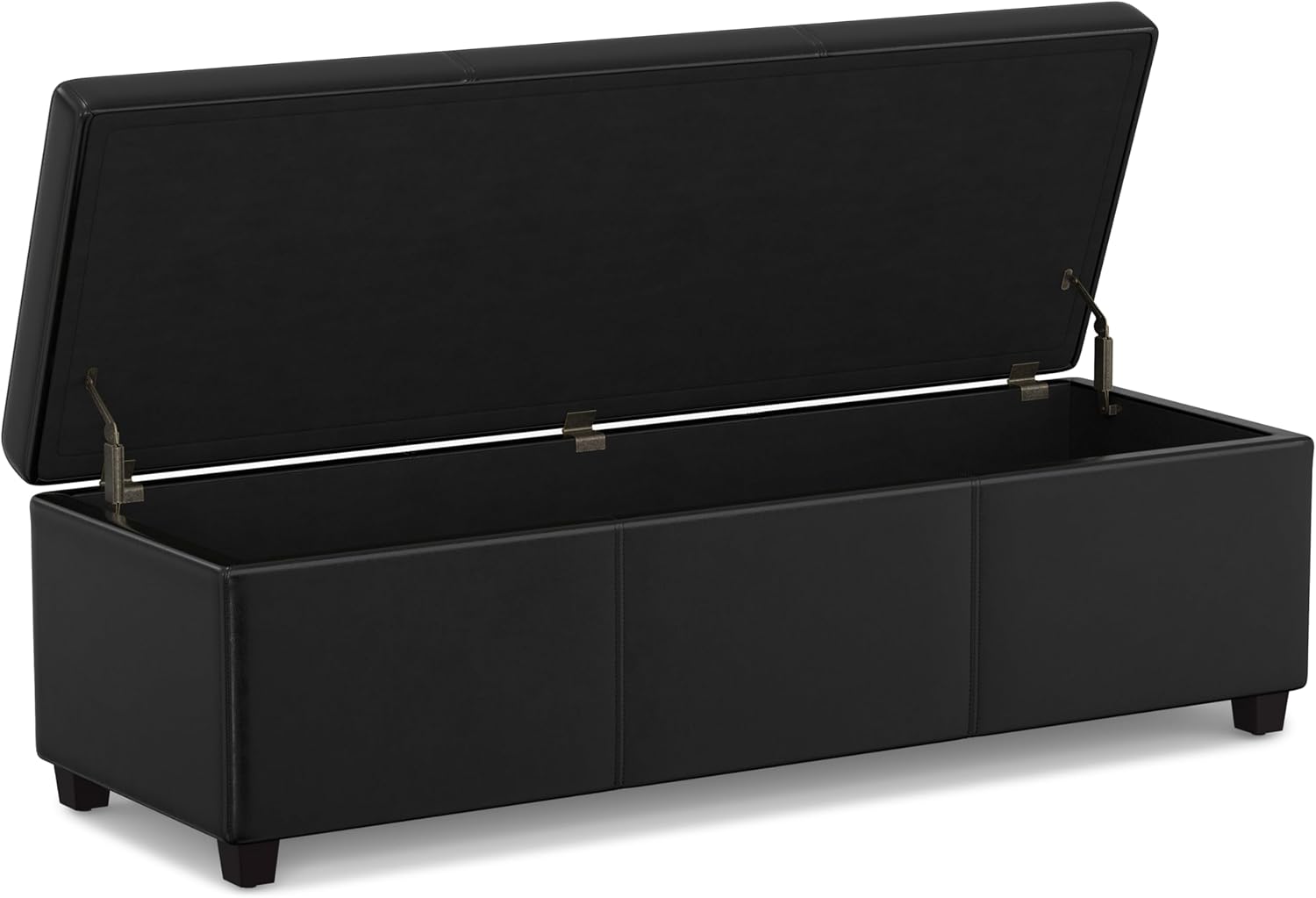 SIMPLIHOME Avalon 54 inch Wide Contemporary Rectangle Extra Large Storage Ottoman Bench in Midnight Black Vegan Faux Leather, Assembled, For the Living Room, Entryway and Family Room