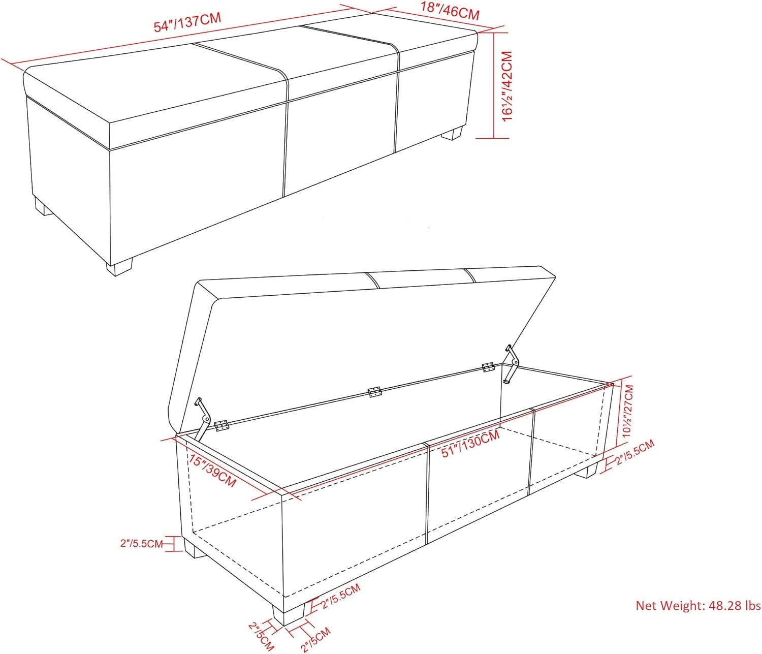 - Multi-functional ottoman can be used in bedroom, living room, family room, hallway as an entryway bench, foot stool, accent furniture or provide additional sitting
