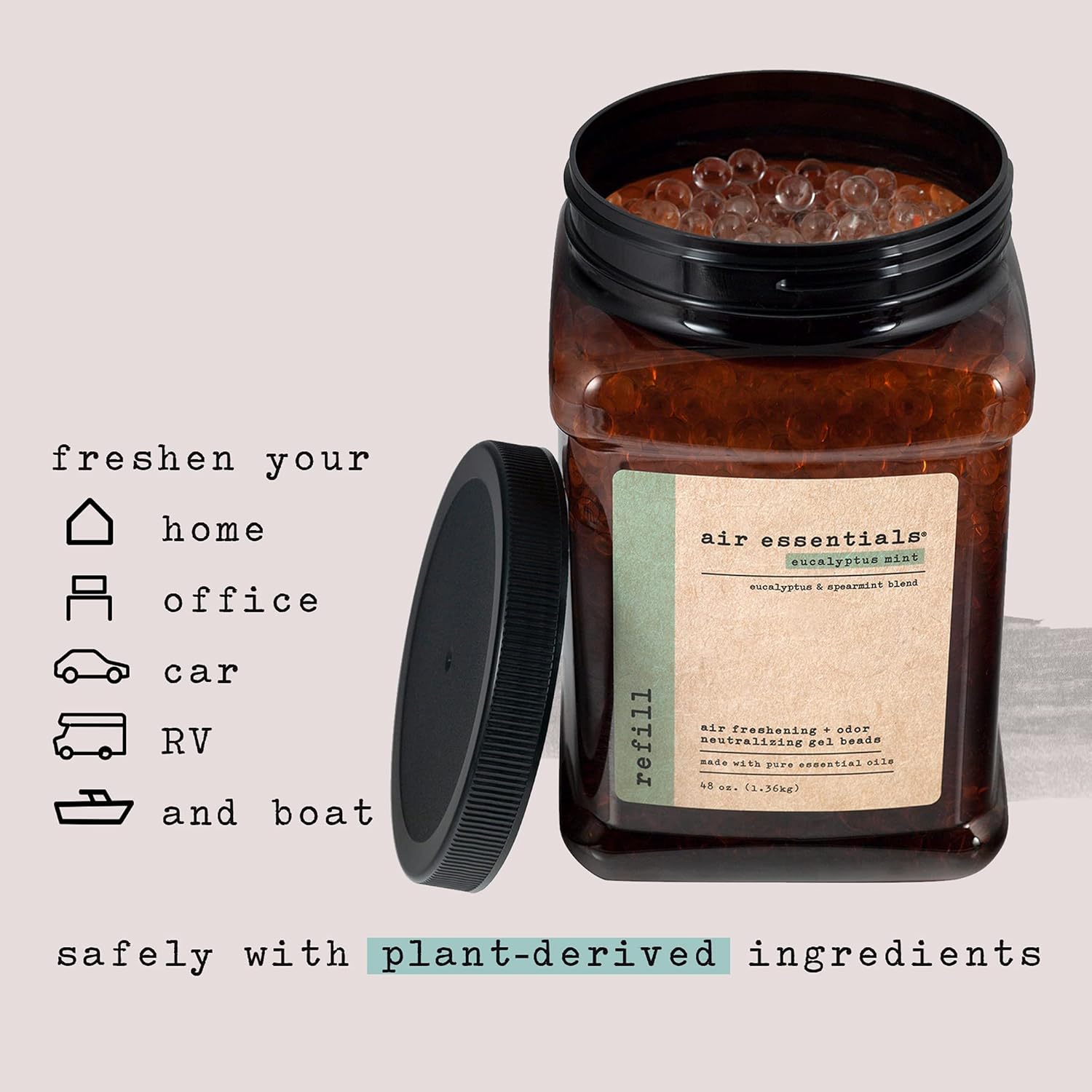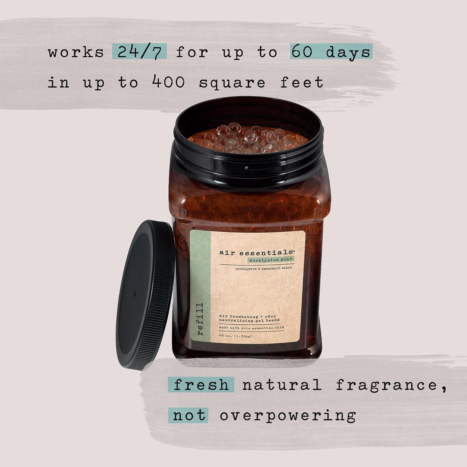 Air Essentials Air Freshener & Odor Neutralizer Gel Bead 48 oz Refill – Odor Eliminator - Made with Pure Essential Oils – Eucalyptus Mint Scent