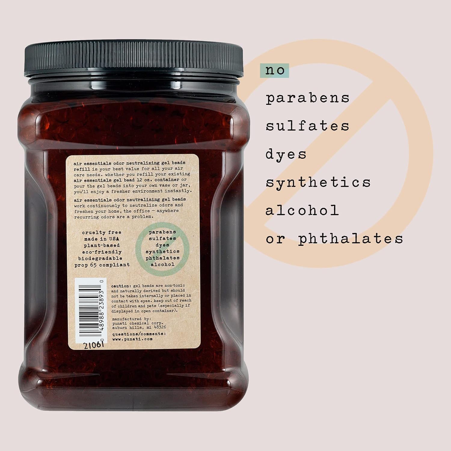 - MADE WITH PURE ESSENTIAL OILS - Air Essentials Air Freshening & Odor Neutralizing Gel Bead Refill contains only plant derived ingredients and a blend of pure essential oils. Each jar provides a pleasant fragrance that does not overwhelm the senses. The Gel Beads will work 24/7 for up to 60 days in up to 400 square feet.