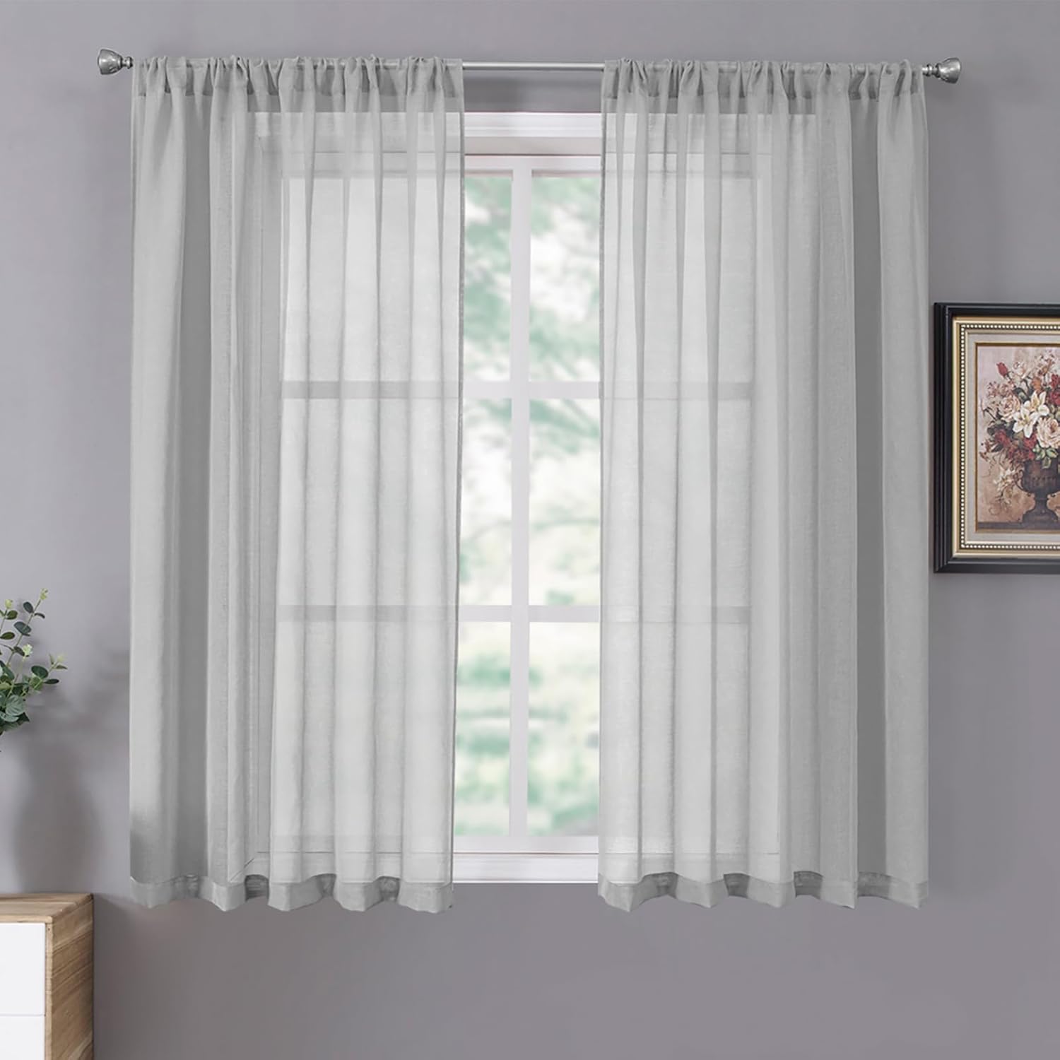 Tollpiz Sheer Curtains Linen Textured Bedroom Curtain Sheers Light Filtering Rod Pocket Voile Curtains for Living Room, 54 x 63 inches Long, Silver Grey, Set of 2 Panels