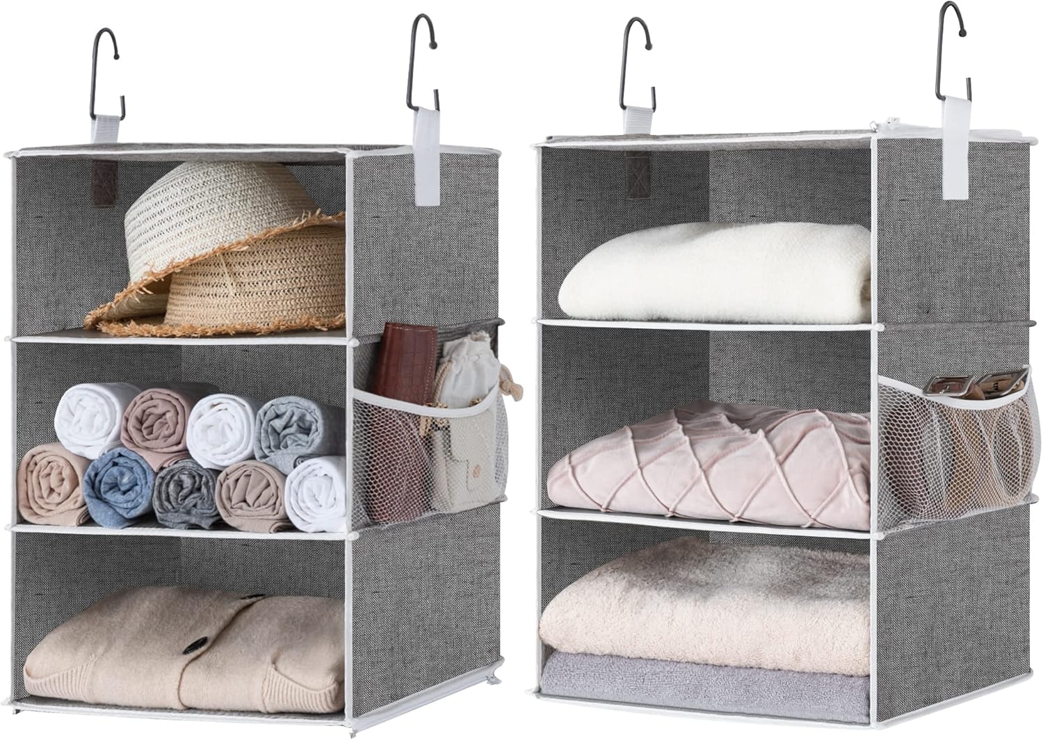- Interchangeable between the 6-shelf hanging closet and two separate 3-shelf hanging organizers through two strong zippers.