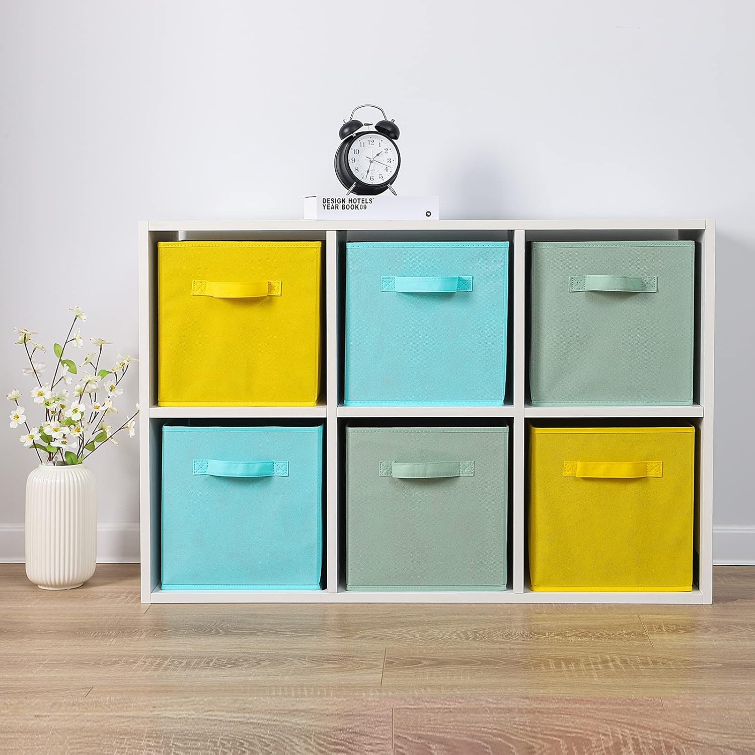 Stero Fabric Storage Bins 6 Pack Fun Colored Durable Storage Cubes with Handles Foldable Cube Baskets for Home, Kids Room, Closet and Toys Organization Cyan, Green, Yellow