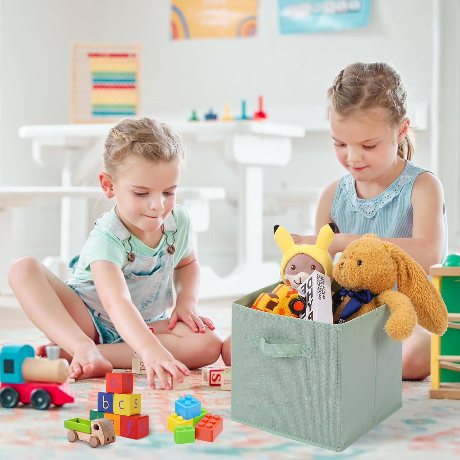 Stero Fabric Storage Bins 6 Pack Fun Colored Durable Storage Cubes with Handles Foldable Cube Baskets for Home, Kids Room, Closet and Toys Organization Cyan, Green, Yellow, Purple, Pink and Peachpuff