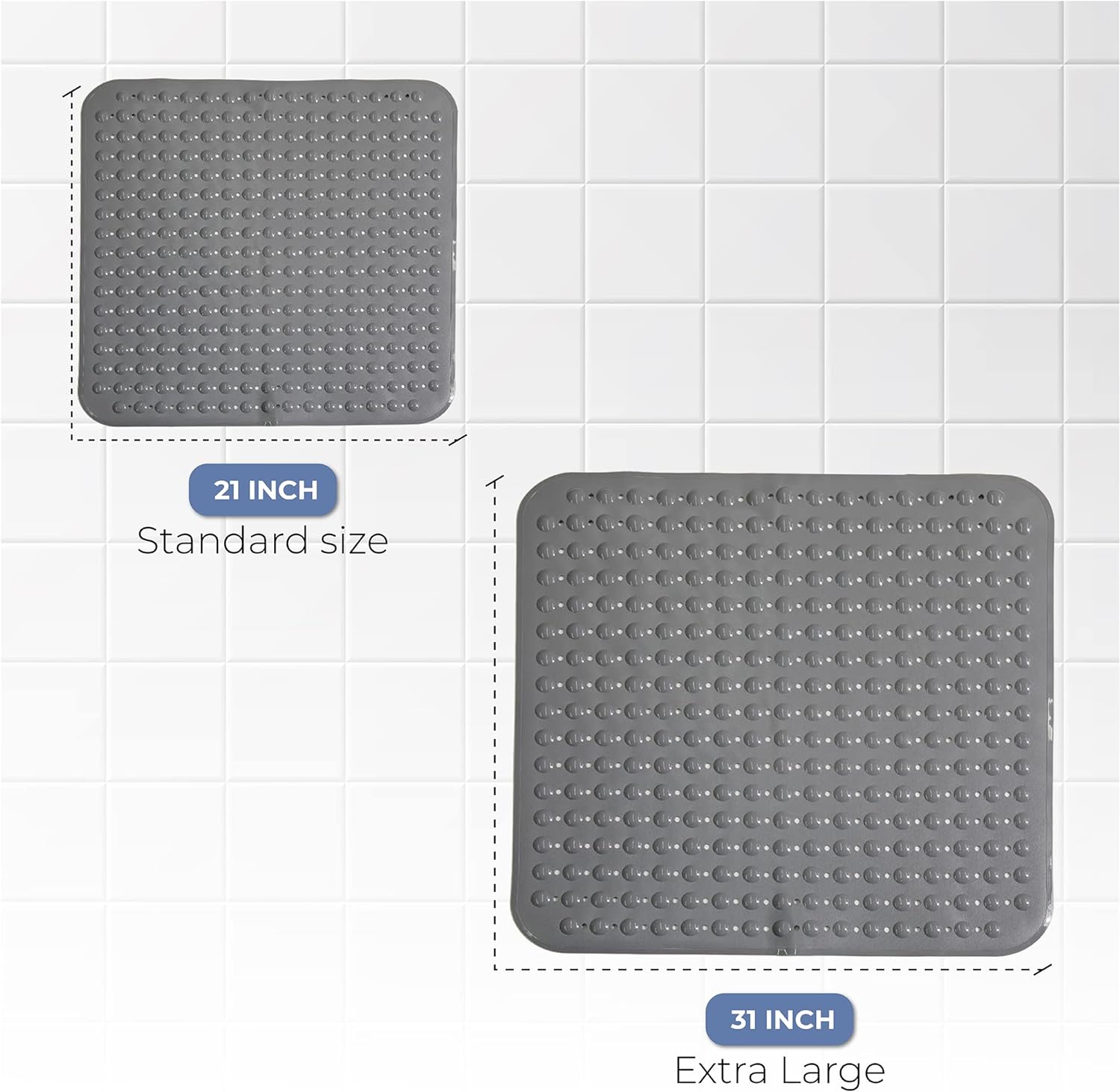 ENKOSI Extra Large Square Non Slip Shower Mat - 31 x 31-inch XL Bathroom Shower Mat - Square Shower Matts for Shower Stall Floors - Secure Suction Cups and Drain Holes (31x31 Grey)