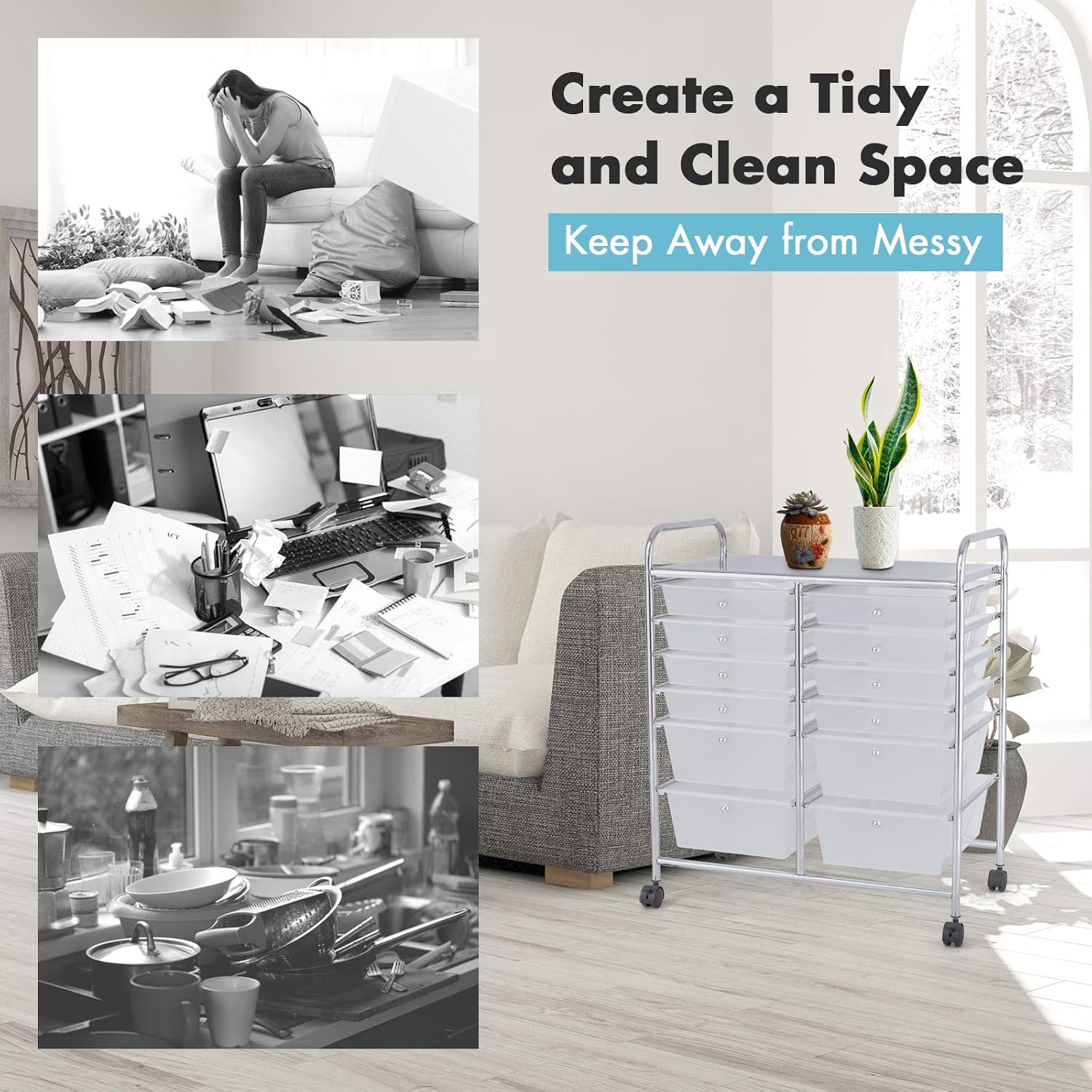 - 12 Drawers with Enough Space: Comes with 12 drawers, the rolling cart will provide ample space for you to store stuff in different categories. The 4 drawers are big and the other 8 are small. It is easy to find the thing you need if you keep them in order. With smooth slide, the drawers are easy to open or close.