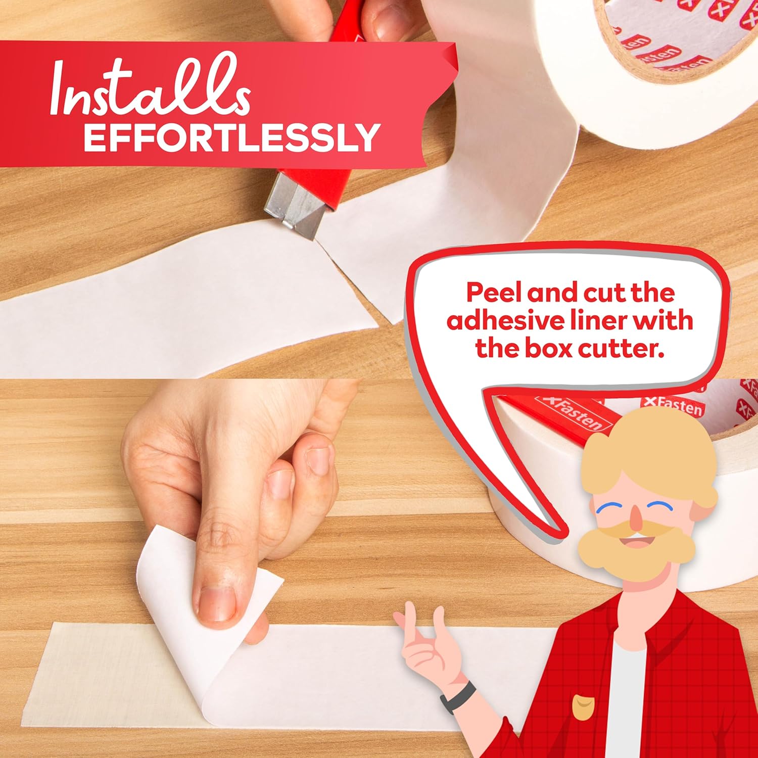 XFasten Double Sided Carpet Tape for Area Rugs, 2 Inch x 10 Yards w/Mini Cutter – Heavy Duty Anti Slip Rug Grip Tape, Works as Rug Gripper, Wood Safe, Easy Removal for Hardwood and Laminate Floors