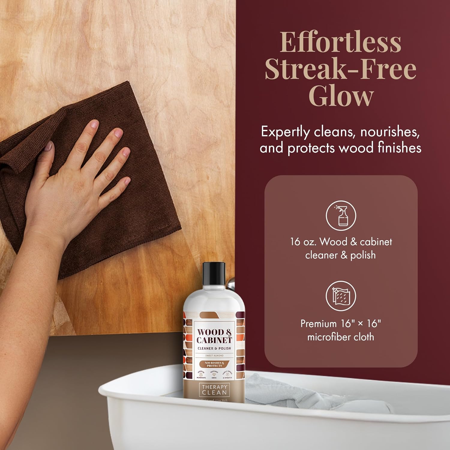 Therapy Wood Cleaner and Furniture Polish 16 oz. (2 Pack) - Wood Cabinet and Table Cleaner - Conditioner - Almond Scent