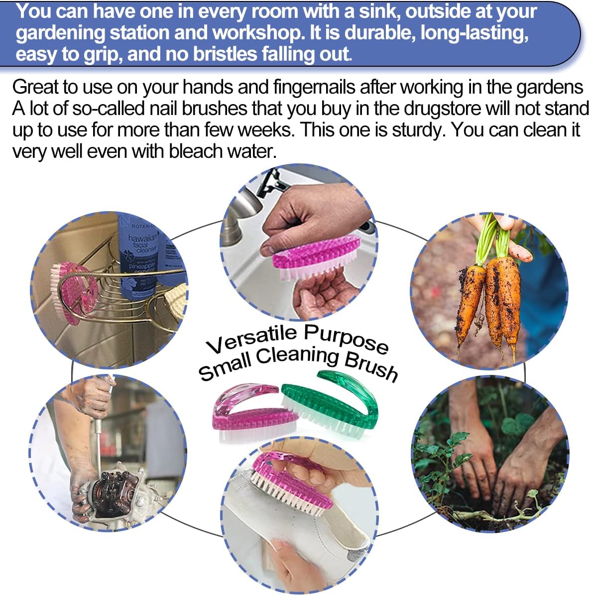 - VALUE PACK - This set includes 4 hand brushes in crystal pink and sprout green. Each brush measures 3.75'' x 1.45'' x 2'', making them the perfect size—not too big, not too small. They’re easy to hold and convenient for travel. These brushes are larger than average nail brushes, making them ideal for cleaning hands and nails as well as vegetables under running water. Additionally, they’re great for scrubbing laundry items before washing.