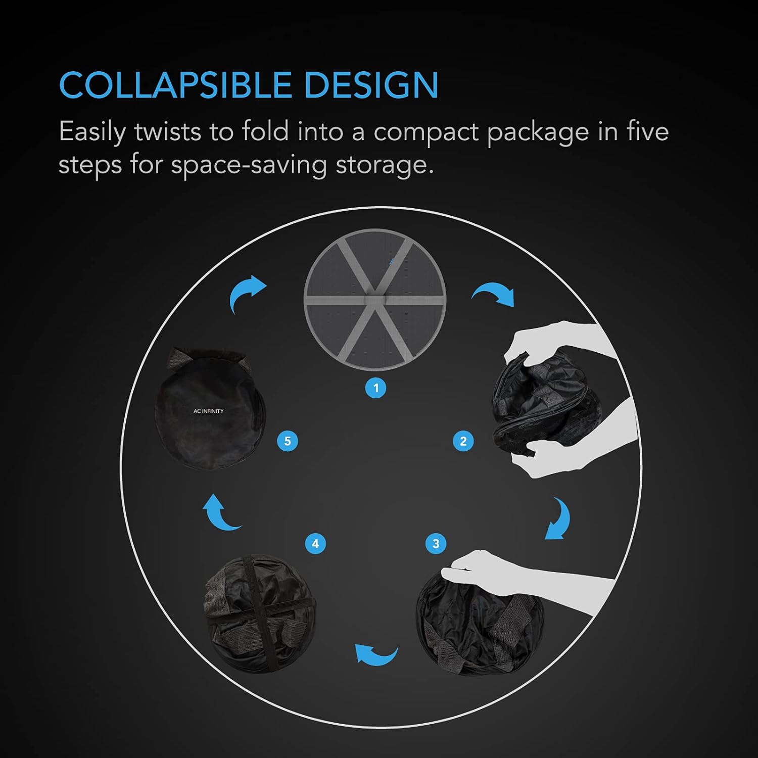 - 2 Tiers | 18 in. Diameter | Fits 2x2 or Larger Grow Tents | Includes Hanging Hook & Carrying Bag