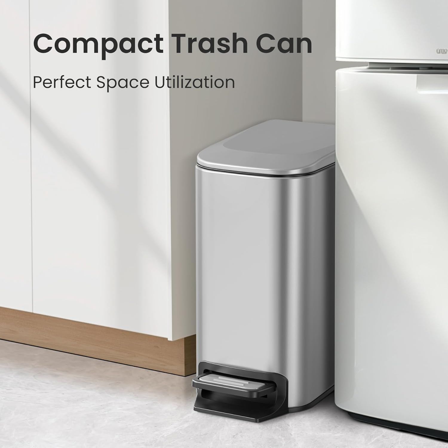 Cesun Small Bathroom Trash Can with Lid Soft Close, Step Pedal, 6 Liter / 1.6 Gallon Stainless Steel Mini Garbage Can for Office, Outdoor Trash Bin with Removable Inner Bucket (Silver)