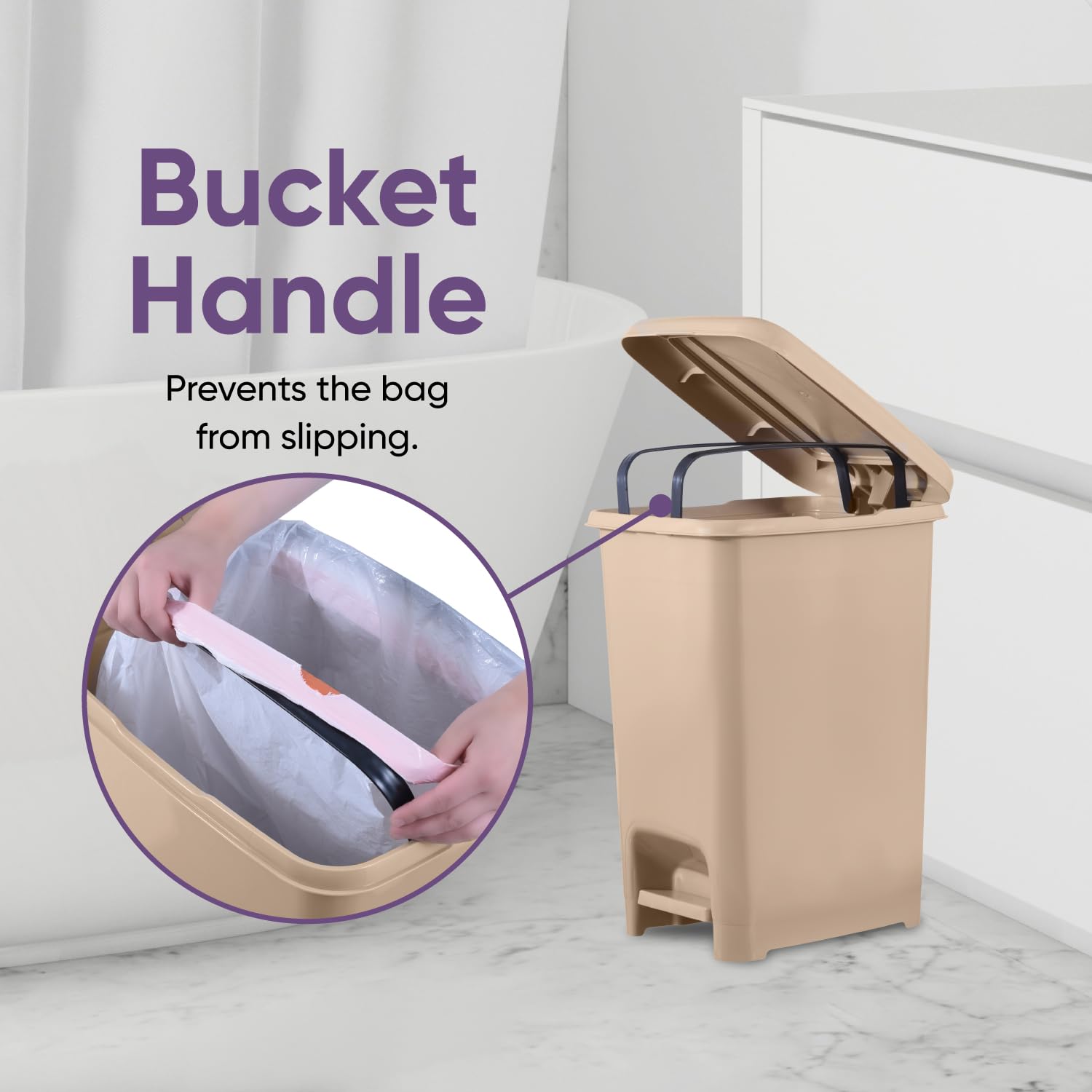 Superio Slim Step On Trash Can, Beige Waste Bin with Foot Pedal Lid 26 Liter, Kitchen, Under Desk, Office, Bedroom, Bathroom (2, 4 Gallon)