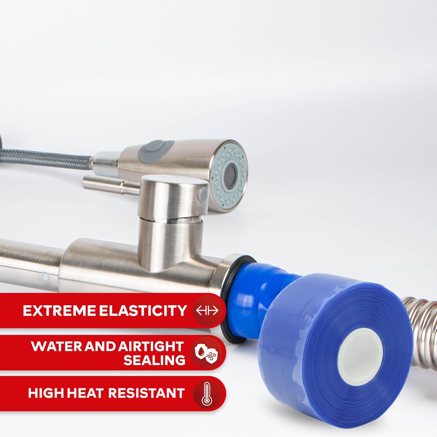 - DESIGNED TO TAKE A BEATING. We created our Blue Silicone Plumbers' Heat and Leak Tape to develop its tensile strength the more you stretch it, thus preventing it from breaking or puncturing against extreme temperature and pressure. This is why it works great for outdoor repairs as a self-sealing silicone tape and self-bonding tape for high-pressure pipe leaks!