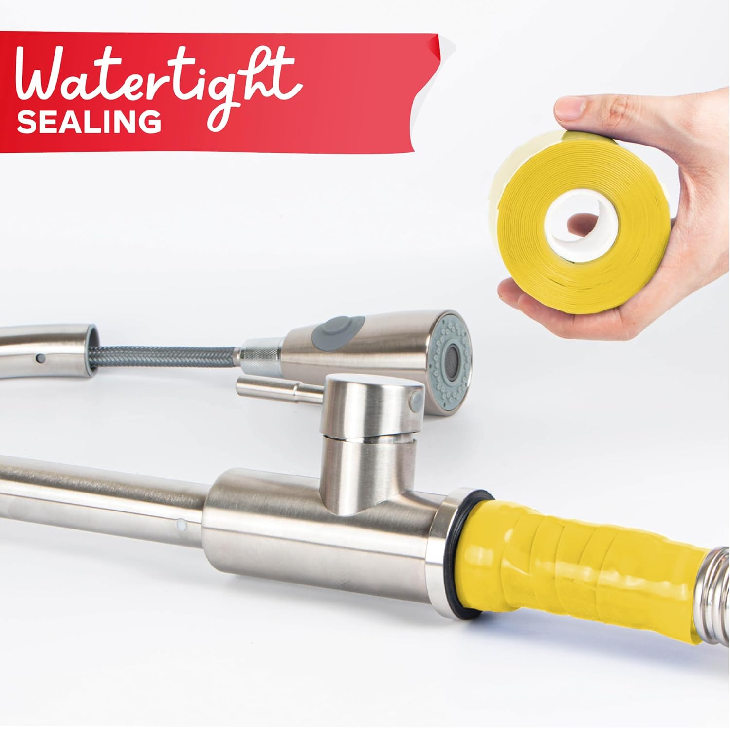 - IDEAL FOR QUICK EMERGENCY REPAIRS. Our Yellow Self-Fusing Silicone Tape PRO is made from 100% Silicone that wraps around itself without the need of any adhesive, providing instant airtight and waterproof sealing to leaky hoses, pipes, electrical wiring, outdoor coax, wiring harnesses, and other fittings and connections. This stretch and seal tape is a must-have for plumbing, leak repair, and car or boat repair kits.