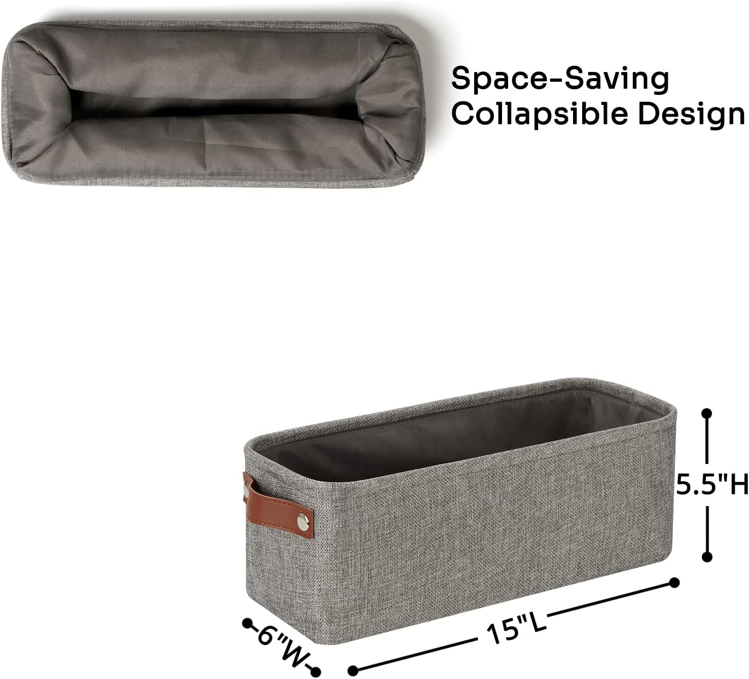 - 【Unique Design & Modern & Decorative】Set of 2 small toilet paper baskets, dimensions(each): 15(L) x 6(W) x 5.5(H) inches. Fabric storage baskets bring you organizing convenience and a sweet home. Great for socks, underwear, books, magazines, toys, pet products, wipes, towels, decorations, office supplies, DVDs, and gifts. The fabric baskets with neutral colors can match a lot of home styles - keeping your home nice and tidy.