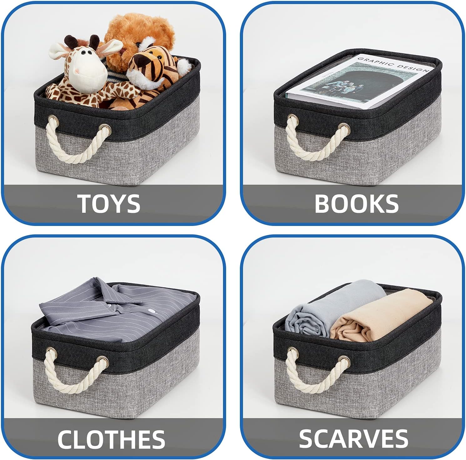 - MULTI-PURPOSE BASKETS: These decorative storage baskets provide a variety of storage needs for our life. The fabric storage bins can organize clothes, shoes, toiletries, daily necessities, towels, diapers, etc. Closet baskets for organizing can be used in bedrooms, living rooms, study rooms, closets, and cabinets