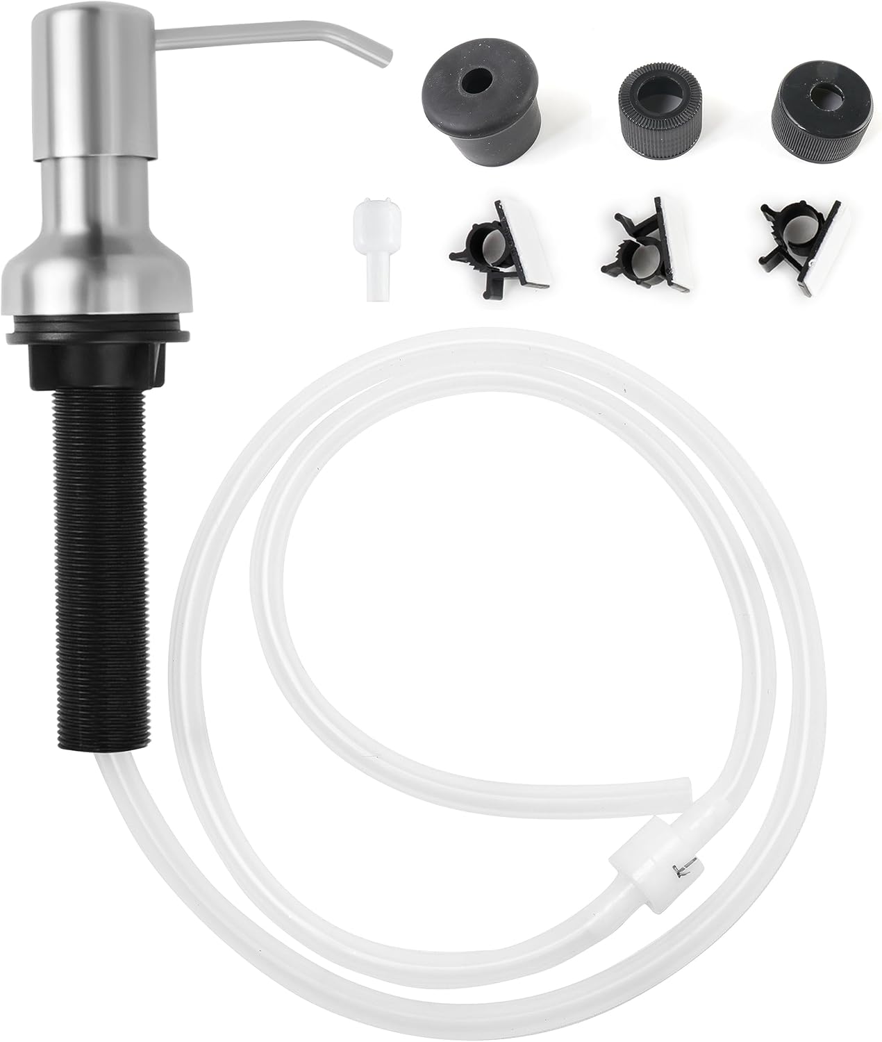 - Premium Material:This sink soap dispenser for kitchen sink is made of durable 304 stainless steel and PE plastic. This soap dispenser pump head possesses long-lasting performance and can survive over 50,000 press tests. Not only waterproof, and is perfect for damp environments.