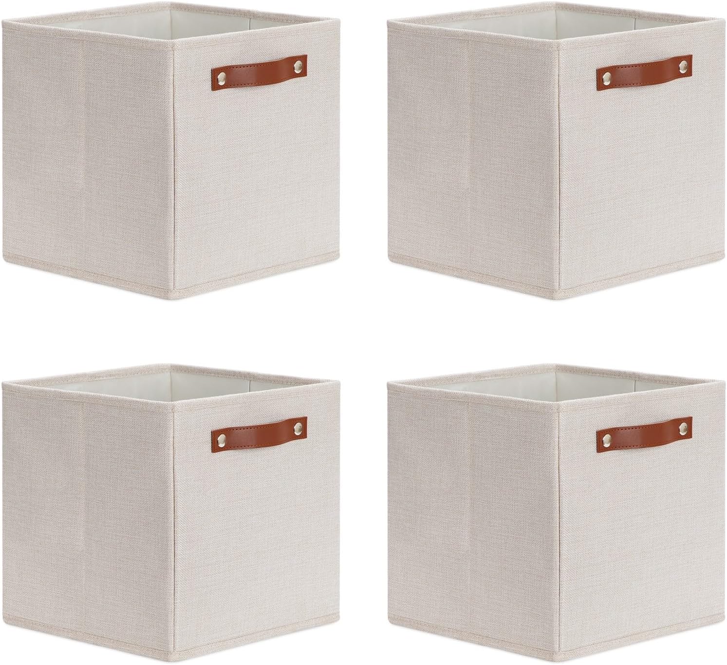 - 【Unique Design & Modern & Decorative】Set of 4 , dimensions(each): 11(L) x 11(W) x 11(H) inches. Home organization Baskets bring you organizing convenience and a sweet home. The fabric baskets with neutral colors can match many home styles - keeping your home nice and tidy.