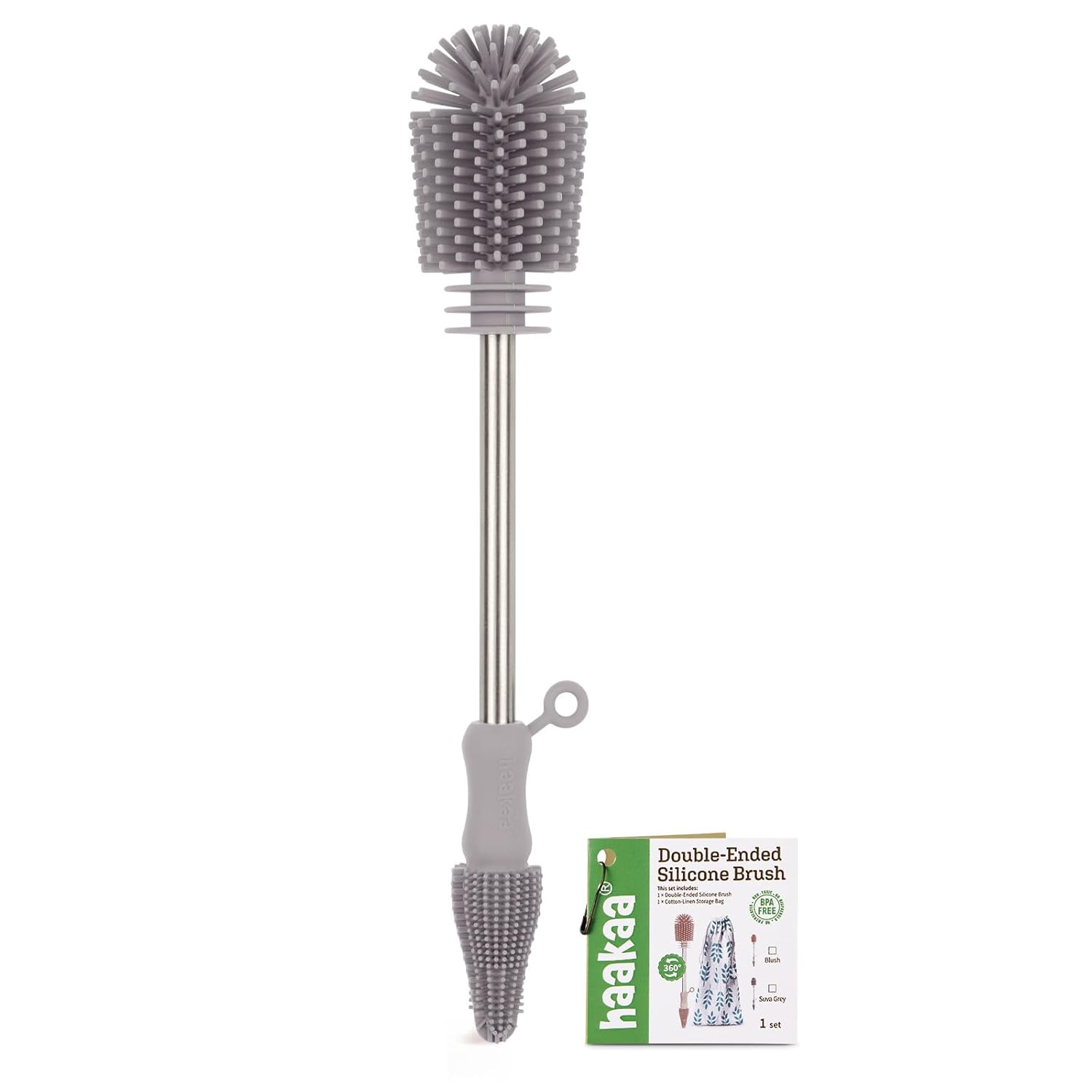 Haakaa Silicone Cleaning Brush - Baby Bottle Brush Cleaner for Breast Pump,Nipple,Breast Milk Storage Bag - Food Grade Silicone - 1 Count - Grey