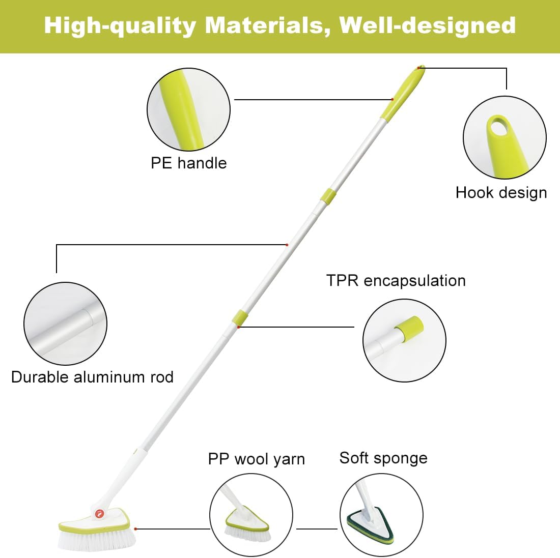 - EASY TO CLEAN FOR TILE SCRUBBER--Scrub brush with long handle includes adjustable taper-edged sponge pad head and sturdy bristle head pivots.(the brush head is TPR coated and won't damage your furniture).The bathroom scrubber is suitable for corners, grooves and grout lines etc. Our set make cleaning easy for you.