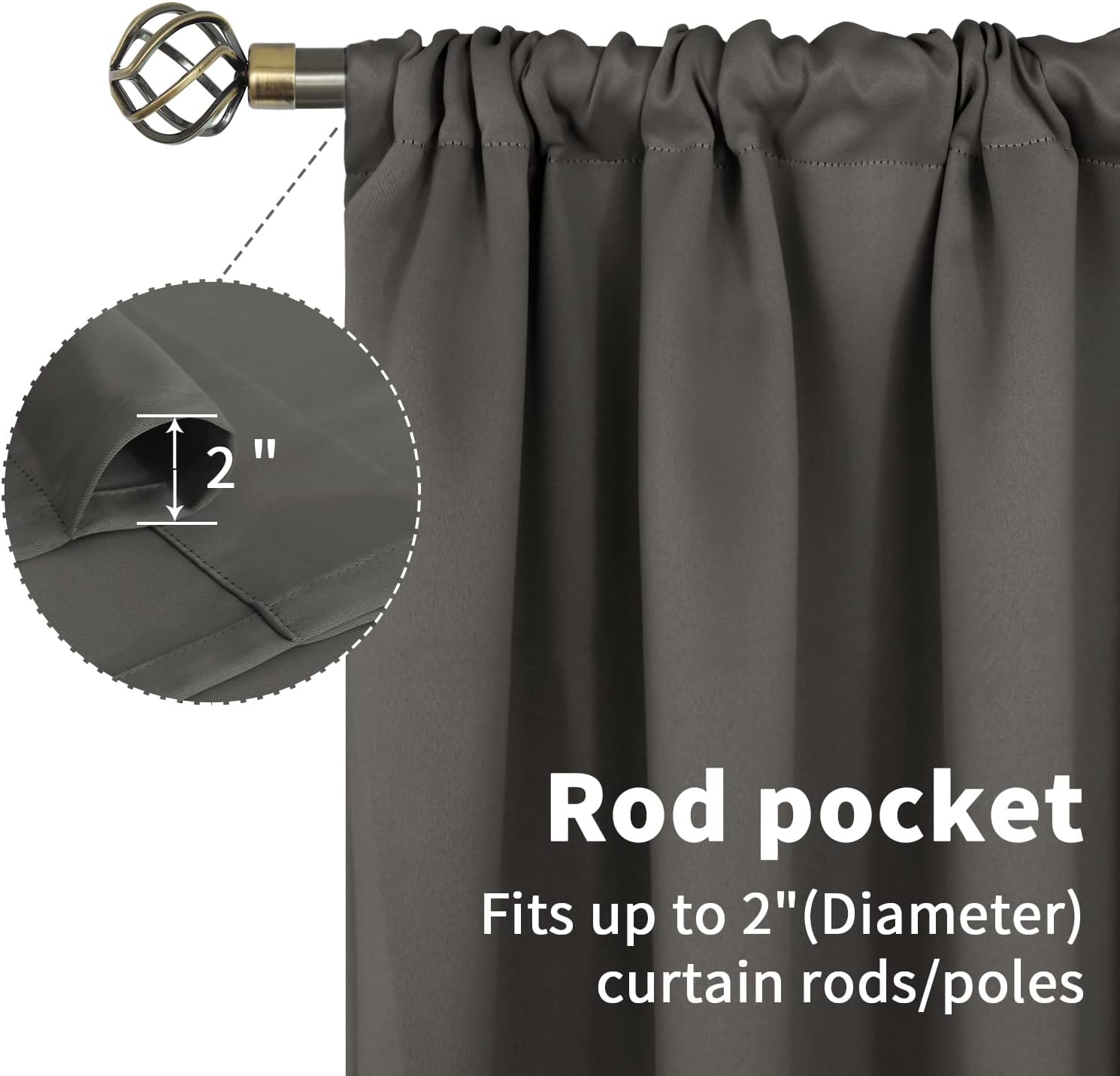 - Rod Pocket Construction: Our block out curtains are with 3 inches rod pocket on top, fits most standard rods and makes the maximize coverage of your windows with no gap. Protect your privacy.