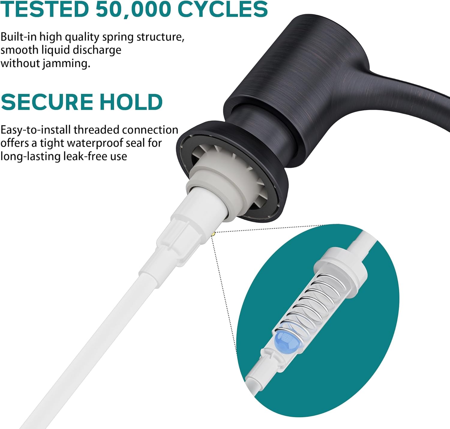 - 【Visual Coordination】- The dispenser's design seamlessly matches most oil-rubbed bronze kitchen faucets, enhancing the sink's aesthetic and contributing to a neater, cleaner, and more efficient kitchen.