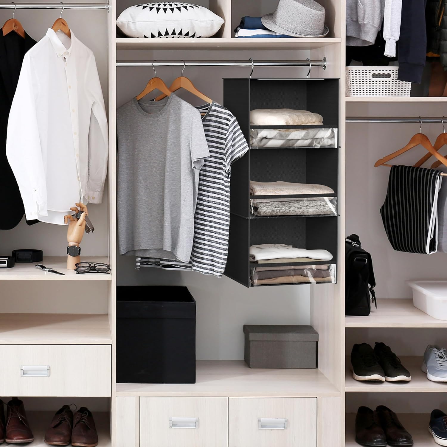 Simple Houseware 3 Shelf Hanging Closet Organizer with Front Stopper, Black