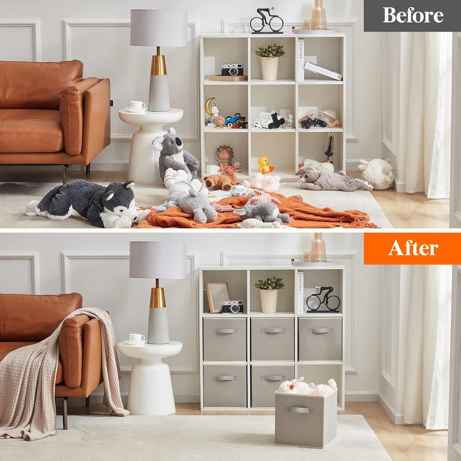 Lifewit Collapsible Fabric Storage Cubes Bins Set 11 Inch, Foldable Cubby Organizers Boxes, 6 Pack Organizing Baskets for Shelf, Closet, Utility Room, Storage Room, 18L Light Gray