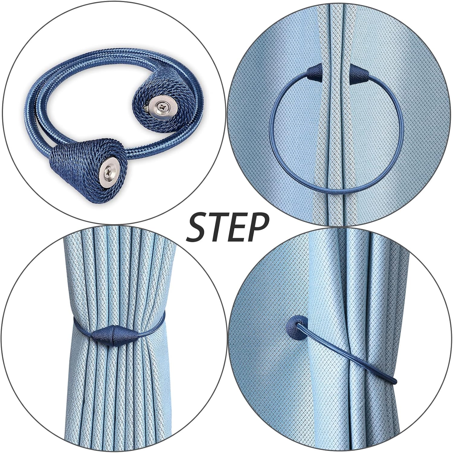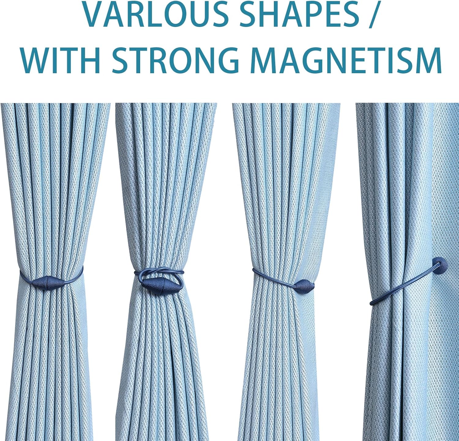 - WIDE APPLICATION: The length and binding method can be adjusted freely according to the thickness of the curtain. It is widely used in curtains in different places such as bedroom, living room, dining room, bathroom, kitchen, office, courtyard and so on. Different colors of magnetic drape tiebacks adorn your curtains, which can change different styles, giving the curtains a unique charm