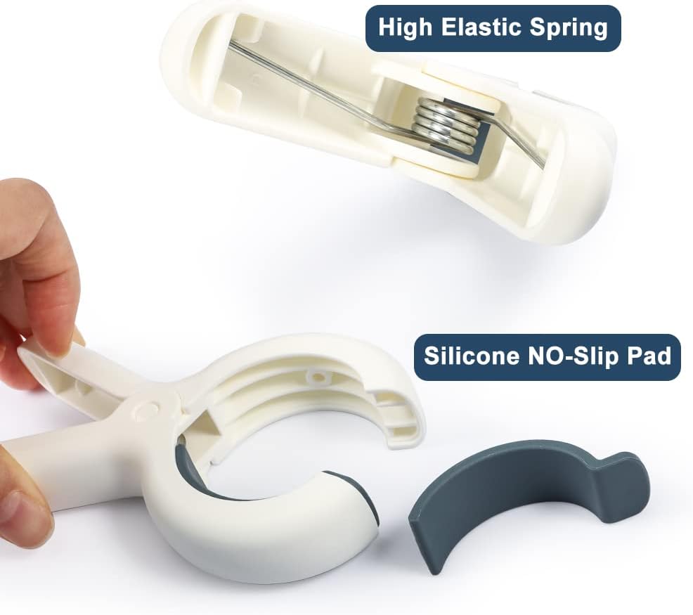 - Heavy Duty beach chair clips are made of thick PP plastic, with High Elastic Spring & Silicone NO-Slip Pad