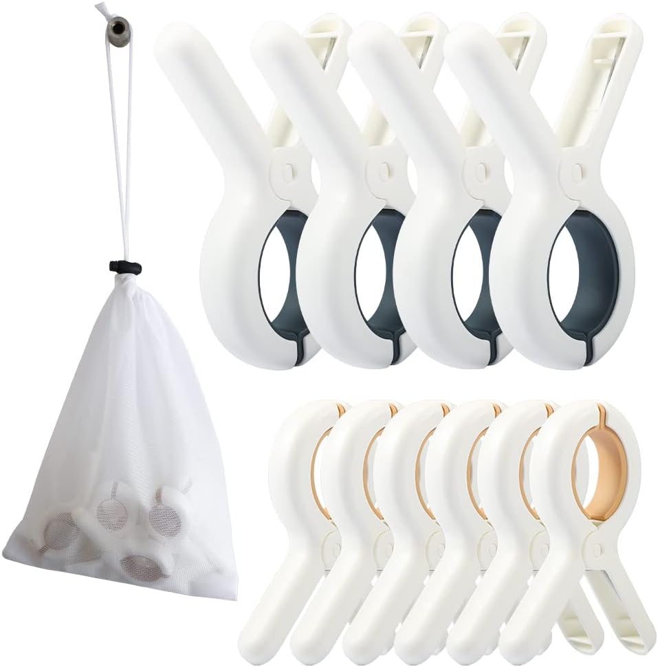 Beach Towel Clip, 10 PCS Cloth Pins, Quilt Drying Clip, Plastic Clothespins, Strong Grip Holder to Dry Laundry on Clothesline and Hanging Rack(6 Small and 4 Large Random Color)
