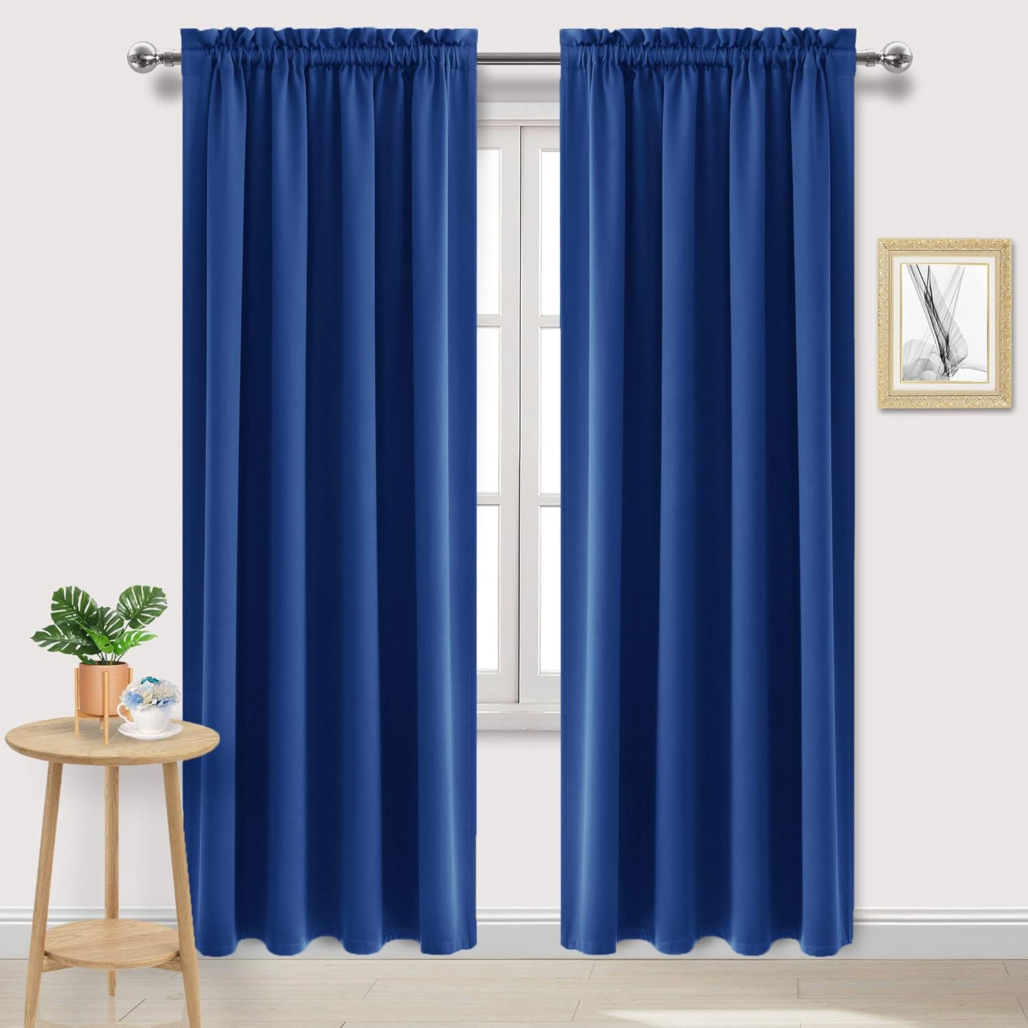 DWCN Blackout Curtains for Bedroom – Rod Pocket Thermal Insulated Noise Reducing Noise Reducing Drapes for Living Room, W 52 x L 95 Inch, 2 Panels, Classic Blue