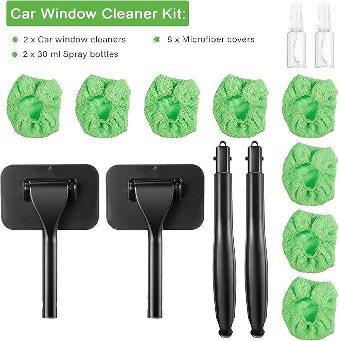 Frienda 2 Set Windshield Cleaner Tool Inside Car Windshield Cleaning Wand Auto Window Cleaner with Detachable Handle, 8 Reusable Microfiber Pads and 2 Spray Bottles for Car Interior(Green)