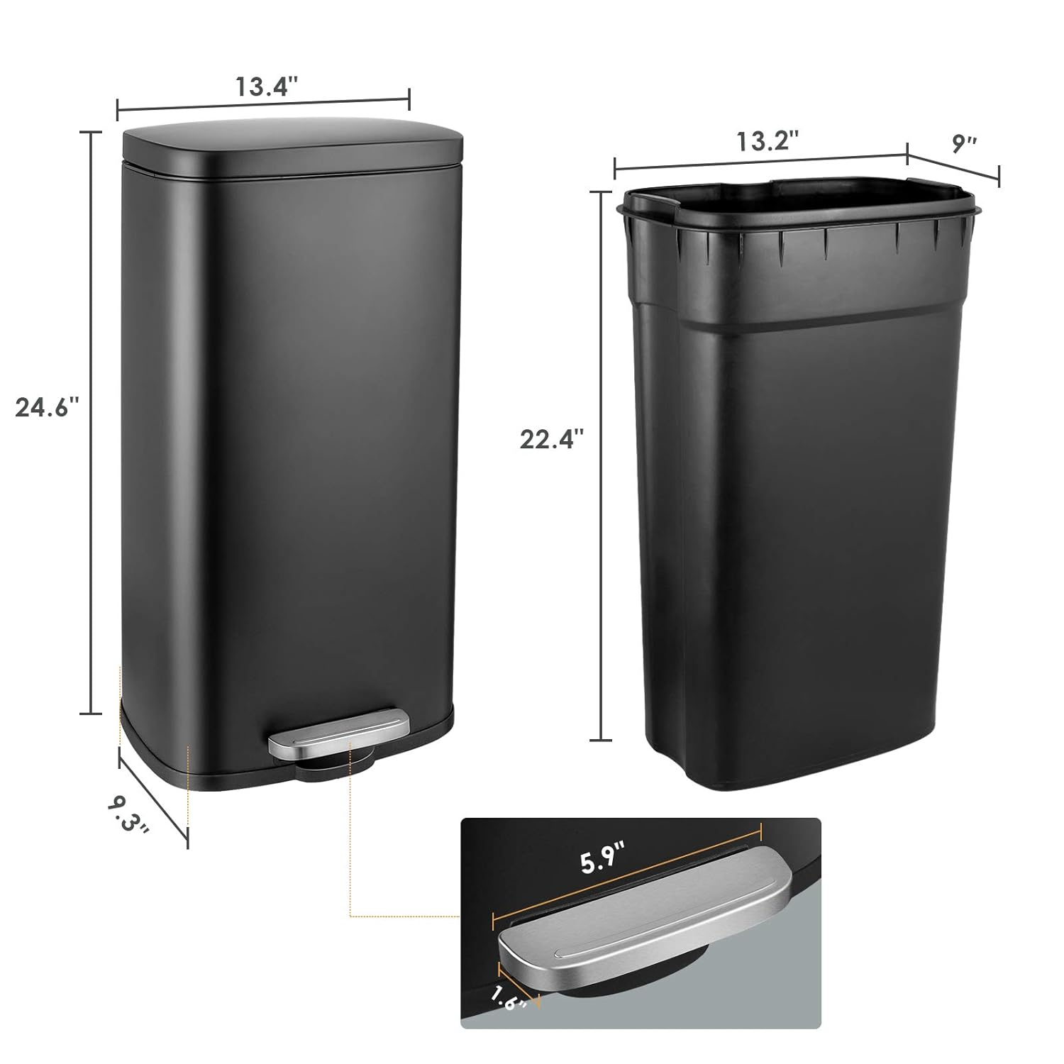 AthLike Trash Can, Stainless Steel Kitchen Garbage Can, Step Waste Bin with Hinged Lid and Removable Inner Bucket, Soft-Close, Dustbin for Bathroom Bedroom Living Room Home (Black, 8 Gal)