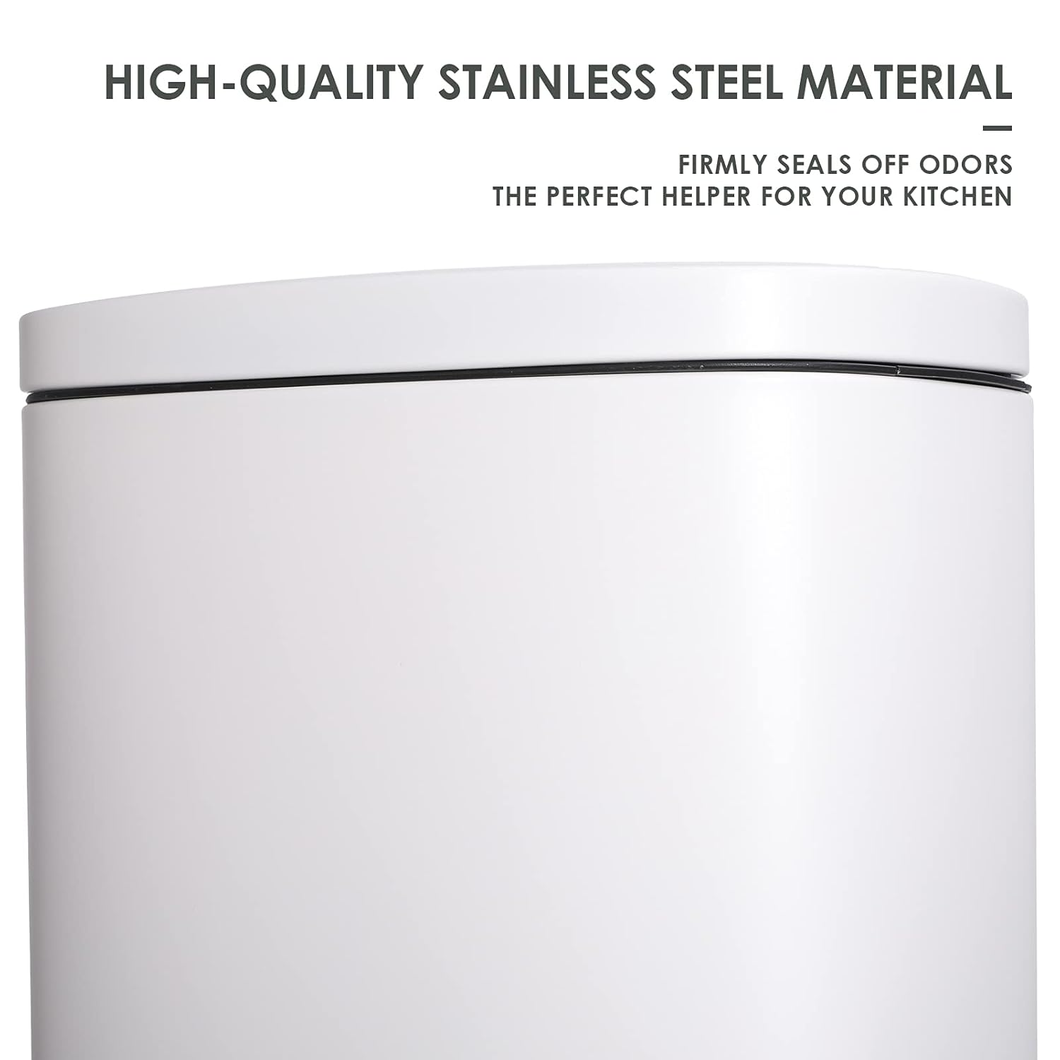 AthLike Trash Can, Stainless Steel Kitchen Garbage Can, Step Waste Bin with Hinged Lid and Removable Inner Bucket, Soft-Close, Dustbin for Bathroom Bedroom Living Room Home (White, 8 Gal)